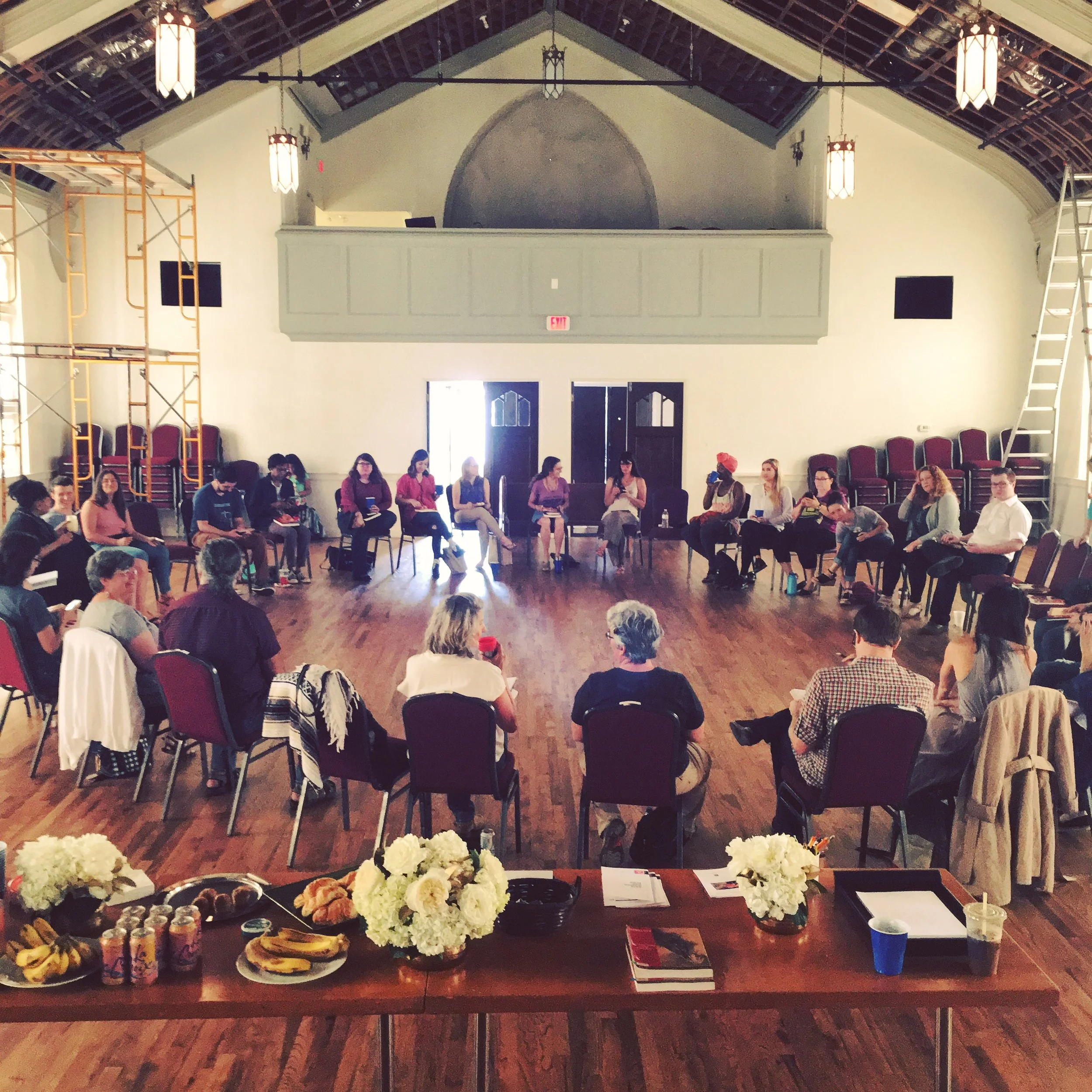 One of the things we love most about being a steward for creative living is working out of our restored church from the 1920s. To give it new life, we’ve thoughtfully made over every part of our space to be a blank canvas that serves as both a backdrop for developing artistic works and for supporting creative entrepreneurs who want to blossom. It’s a very purposeful space, meant to support the arts and artists, helping them to grow through access to creative space, coaching and mentorship.