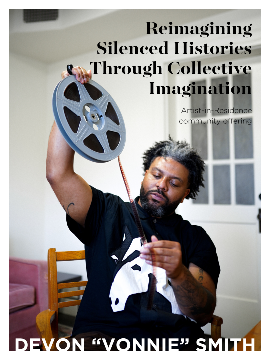 Devon "Vonnie" Smith (b.1991, Northside Milwaukee, WI) is a research-based cultural worker, who uses various modes of documentary production to preserve Black diasporic histories, with intentions of disrupting and dismantling systems of erasure. His cinema practice deviates from conventional forms of storytelling and narrative, and instead utilizes experiential aesthetics to engage viewers and participants in the work. Smith is currently based in Dallas-Fort Worth with his wife and three children. He is a Professor of Practice in Film Production at SMU.